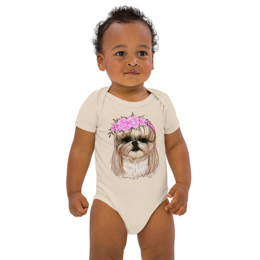 Adorable Dog with Flower Hair Crowns Bodysuit, No. 0562
