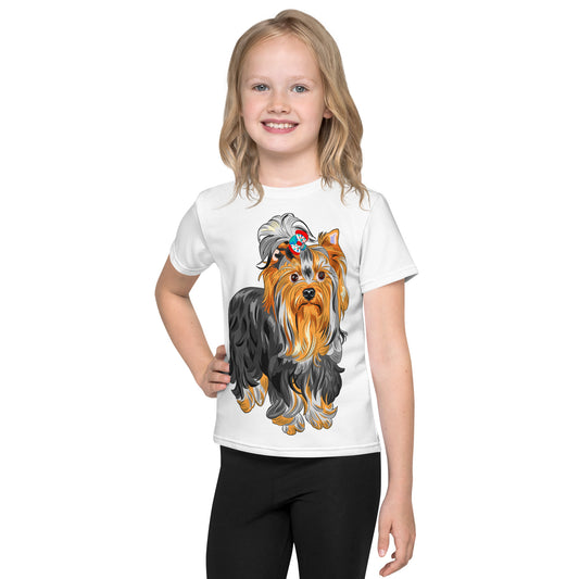 Cute dog wears colorful hair tie, T-shirts, No. 193