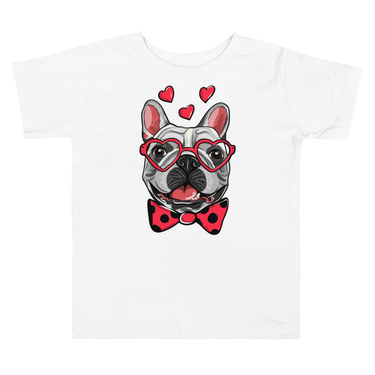 Cute French Bulldog Dog with Funny Heart Glasses T-Shirt, No. 0198