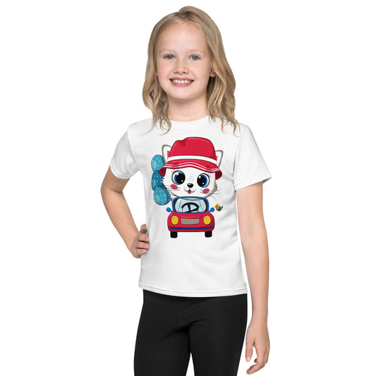 Cute Kitty Cat Driving Car T-shirt, No. 0310