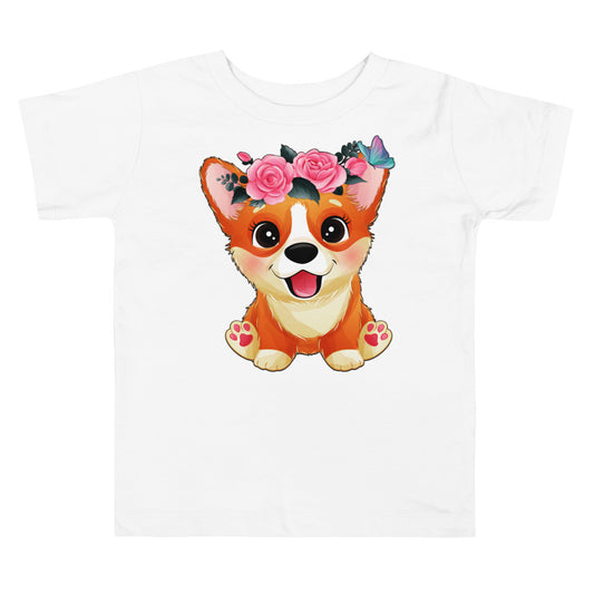 Cute Little Corgi Dog with Flowers, T-shirts, No. 0354
