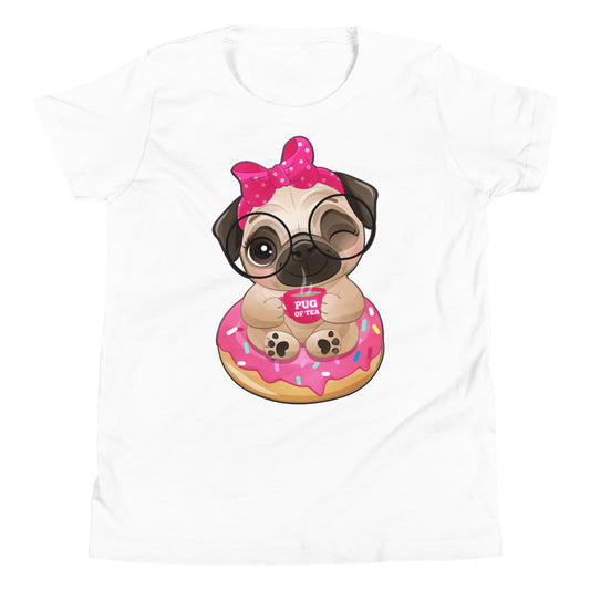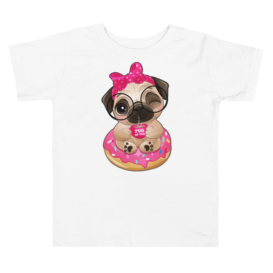 Cute Little Pug Dog Sitting in Donut T-shirt, No. 0365