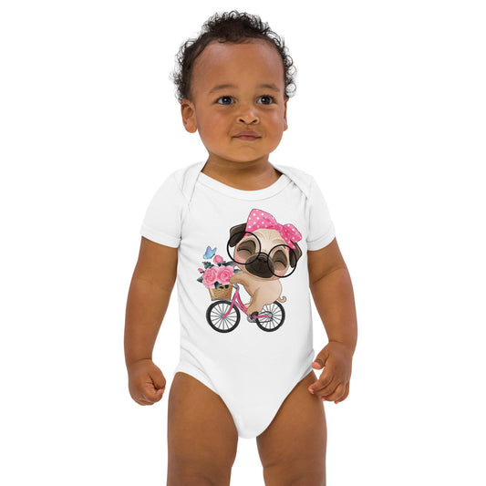 Cute Little Pug Dog Riding Bicycle, Bodysuits, No. 0364