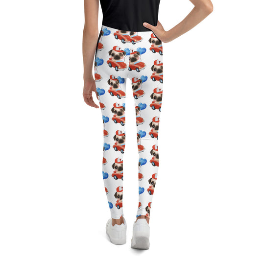 Cute Puppy Dog Pug Driving Car Leggings, No. 0224