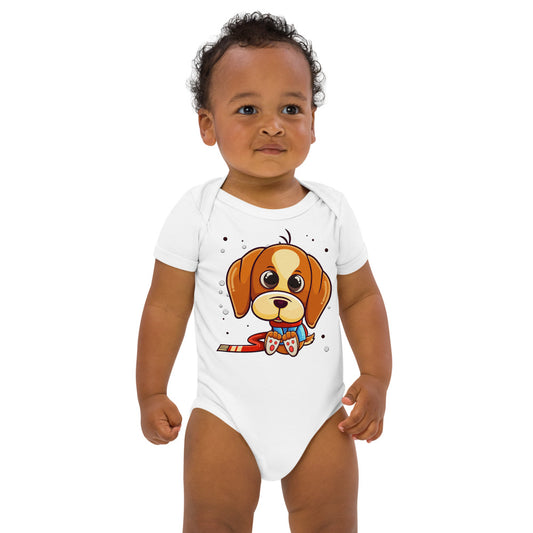 Cute Puppy Dog with Red Ribbon Bodysuit, No. 0374