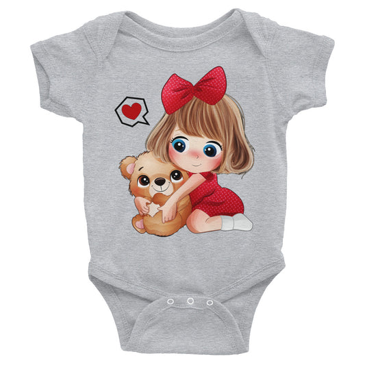 Lovely Girl Hugging Cute Bear, Bodysuits, No. 0051