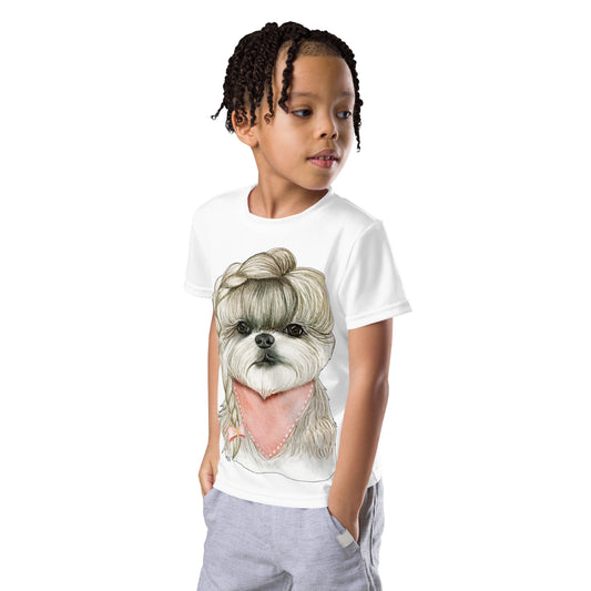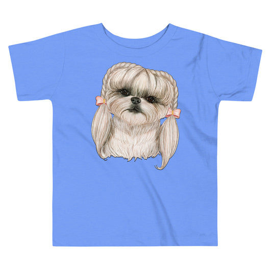 Adorable Dog with Hair Braids Ribbon T-Shirt, No. 0564