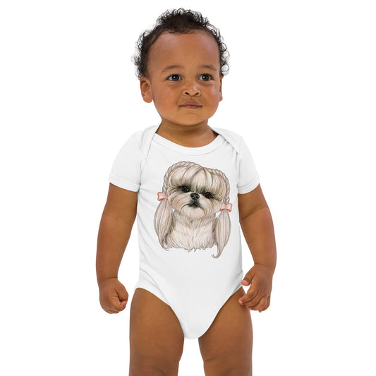 Adorable Dog with Hair Braids Ribbon, Bodysuit, No. 0564