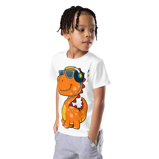 Cool Dinosaur Listening Music T-shirt, No. 0099
