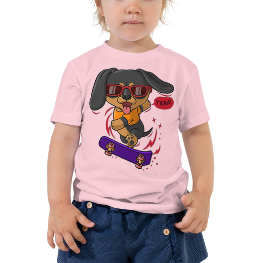 Cool Dachshund Dog Playing Skateboard T-Shirt, No. 0257