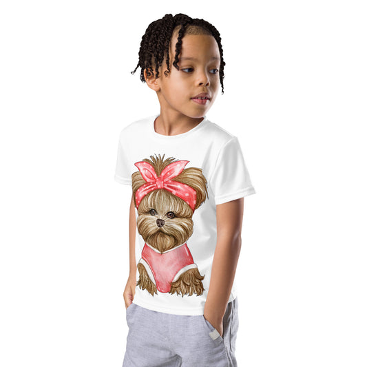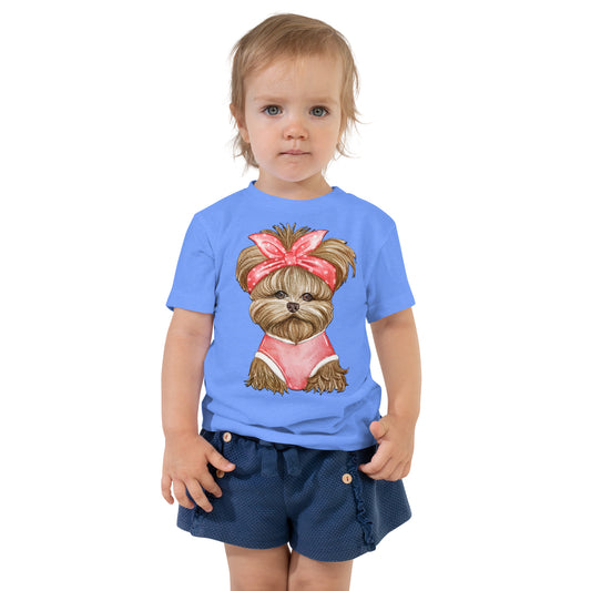 Adorable Dog with Red Ribbon T-Shirt, No. 0566