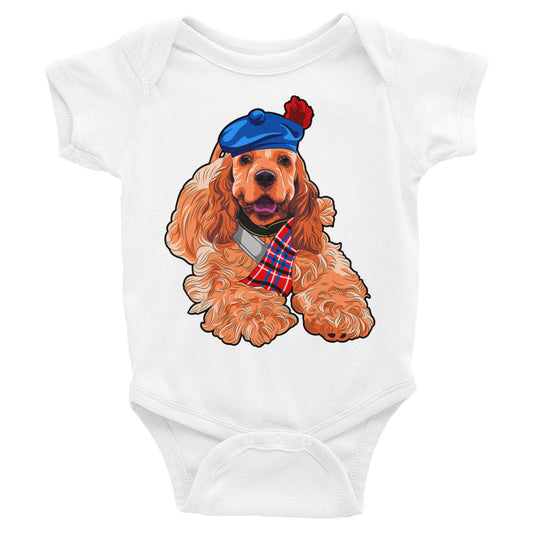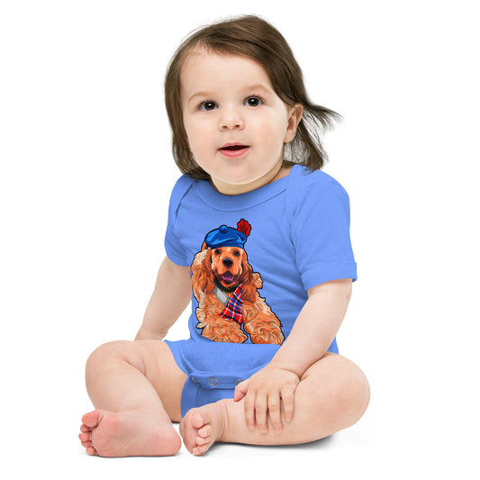 American Cocker Spaniel Dog Wears Blue Hat Bodysuit, No. 0551