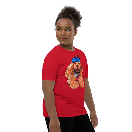 American Cocker Spaniel Dog Wears Blue Hat T-Shirt, No. 0551
