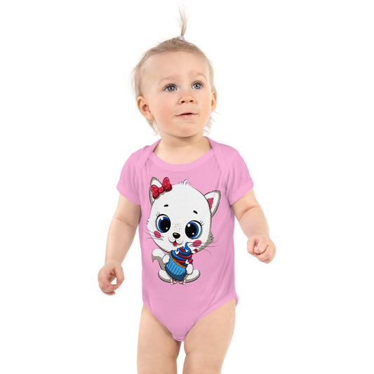 Cute Baby Cat Eating Cupcake Bodysuit, No. 0267