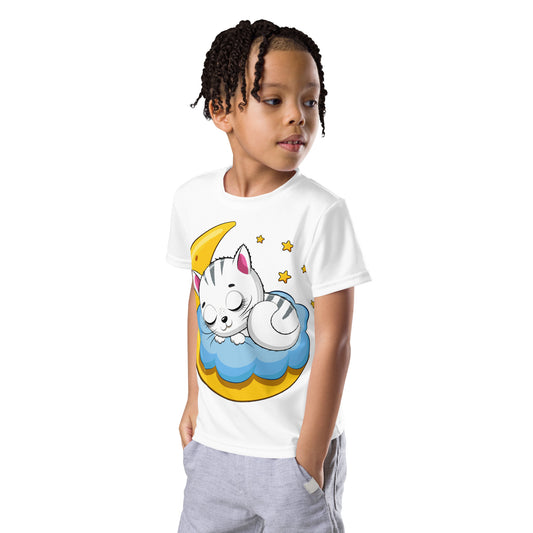 Cute Baby Cat Sleeping on the Clouds T-Shirt, No. 0271