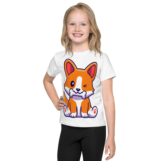 Cute Corgi Dog Eating Bone T-shirt, No. 0182