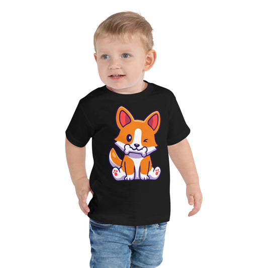 Cute Corgi Dog Eating Bone T-Shirt, No. 0182