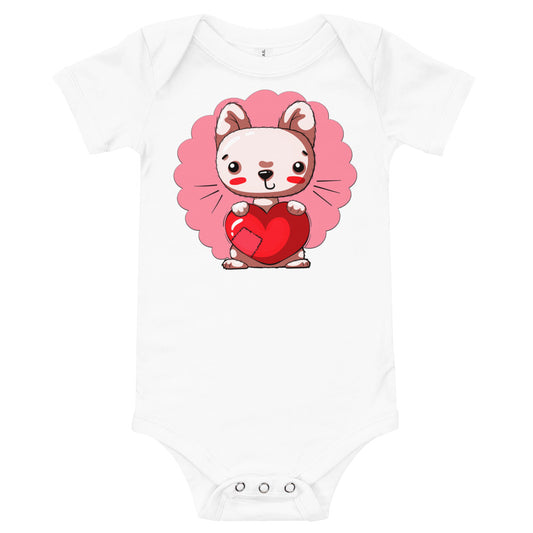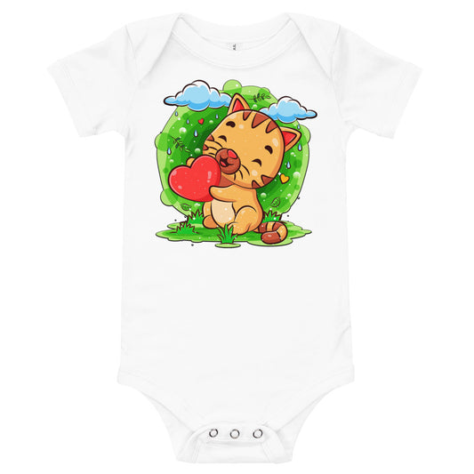 Happy Baby Cat Holding Heart Bodysuit, No. 0528