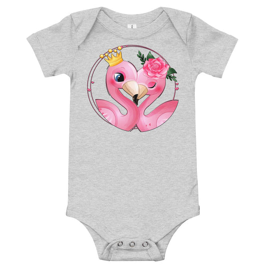 Cute Flamingos with Roses Bodysuit, No. 0077