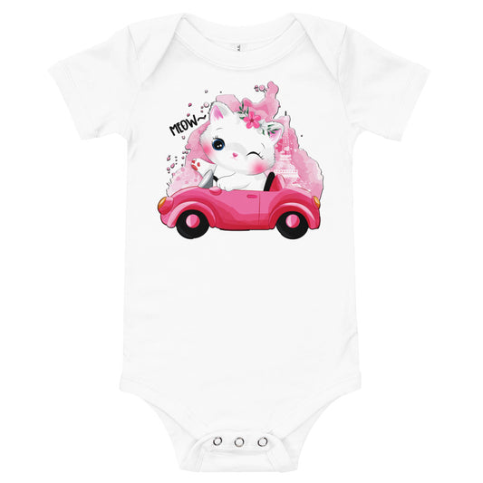 Cute Kitty Cat Riding Car Bodysuit, No. 0323