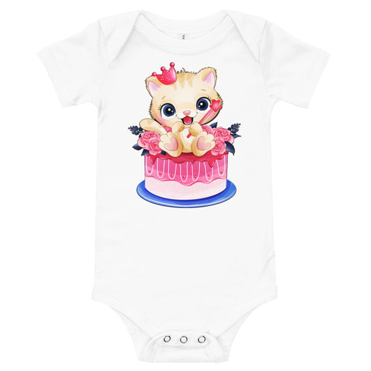 Lovely Baby Kitty Cat Sitting on Cake, Bodysuits, No. 0465