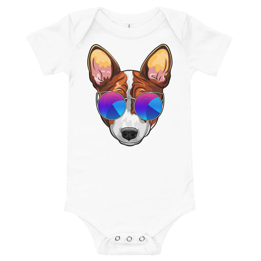 Basenji Dog Wears Glasses Bodysuit, No. 0104