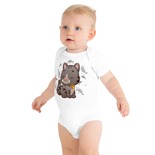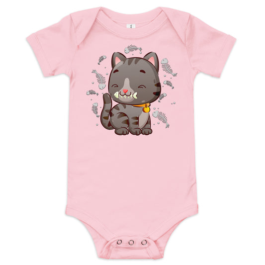 Cute Baby Cat Eating Fish Bone Bodysuit, No. 0138