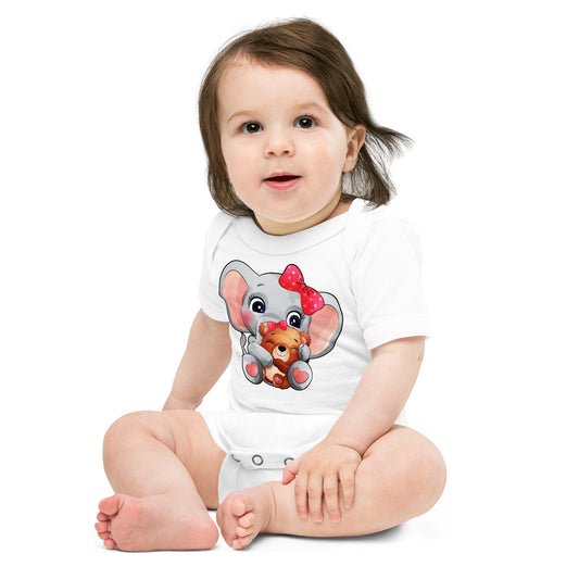 Cute Elephant with Little Bear Bodysuit, No. 0012