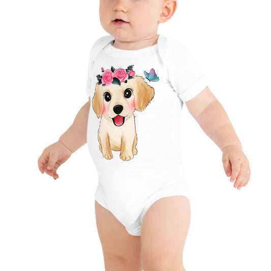 Cute Little Golden Retriever Dog Bodysuit, No. 0359