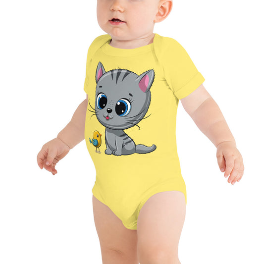 Cute Baby Cat with Bird Bodysuit, No. 0139