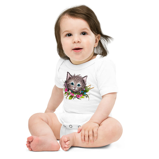 Cute Cat Face with Flowers Wreath Around the Neck Bodysuit, No. 0155