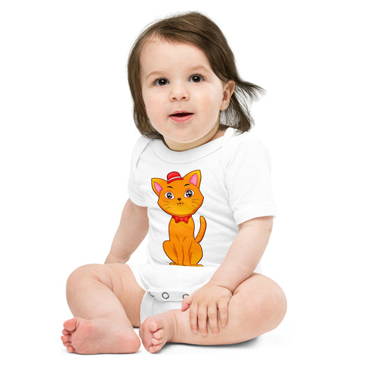 Cute Cat Wearing Red Hat Bodysuit, No. 0163