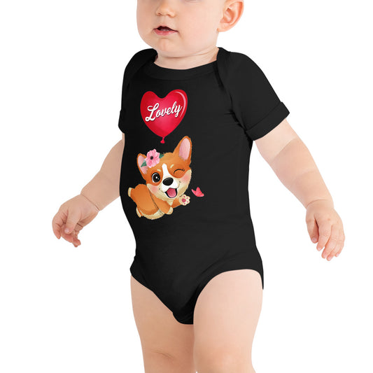 Corgi Dog Flying with Balloon Bodysuit, No. 0054