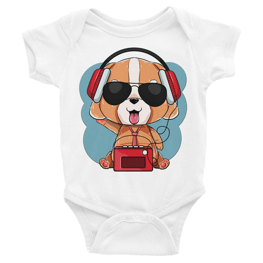 Cute Dog Puppy Listening to Music, Bodysuits, No. 0295