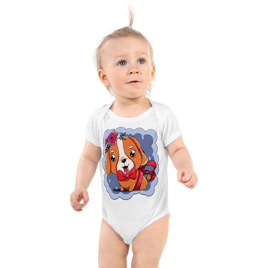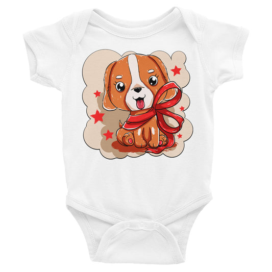 Cute Dog Puppy with Red Ribbon, Bodysuits, No. 0299