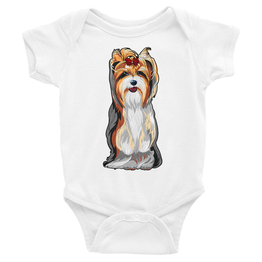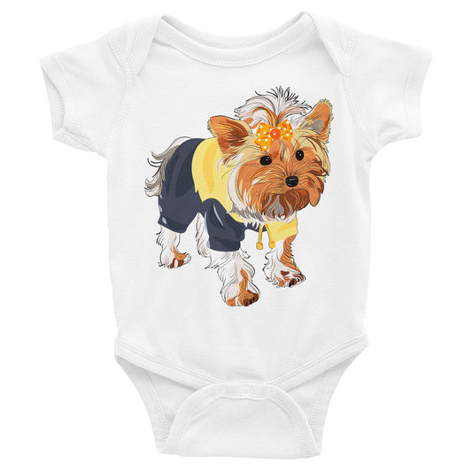 Cute dog wears yellow hair tie, Bodysuits, No. 0556