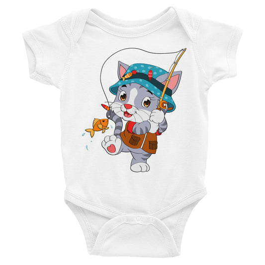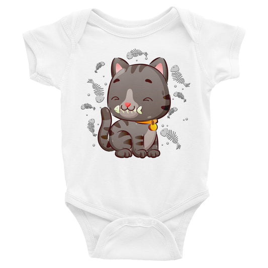 Cute Baby Cat Eating Fish Bone, Bodysuits, No. 0138