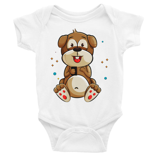 Cute Dog Playing Game on Smartphone, Bodysuits, No. 0294