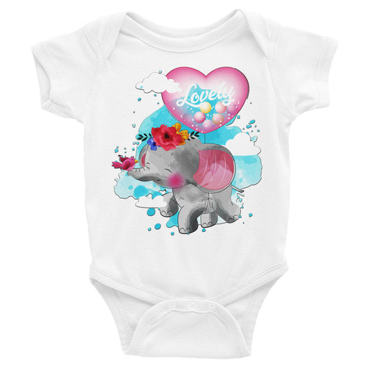 Cute Elephant with Love Balloon Bodysuit, No. 0084