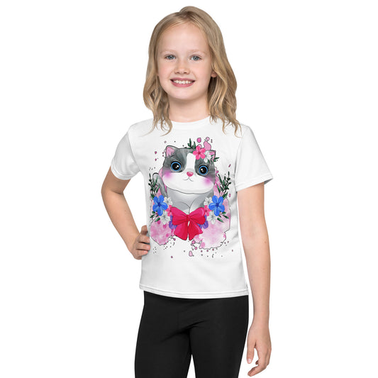 Cute Kitty Cat with Flowers T-Shirt, No. 0328