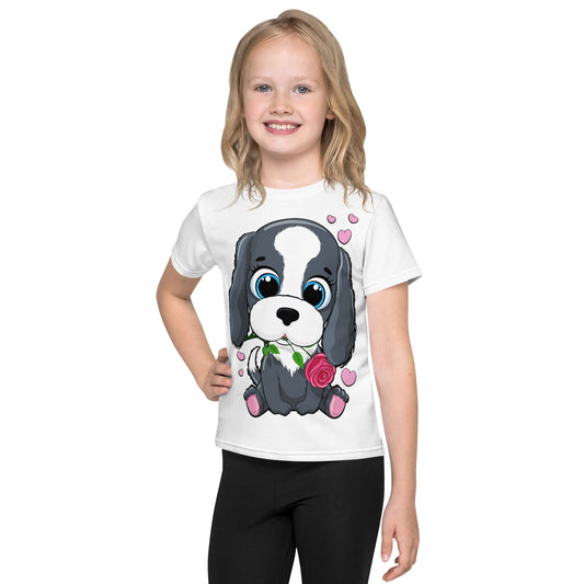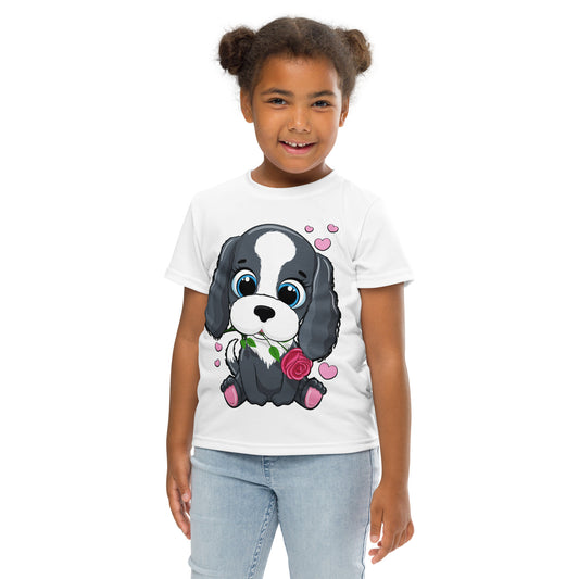 Cute Little Puppy Dog Holding Flower T-Shirt, No. 0218