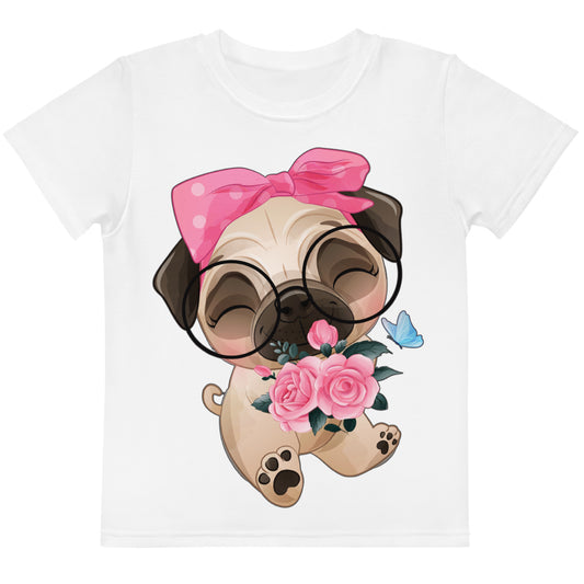 Cute Little Pug Dog Holding Roses T-Shirt, No. 0362