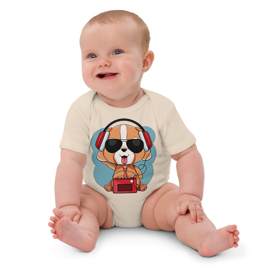 Cute Dog Puppy Listening to Music Bodysuit, No. 0295