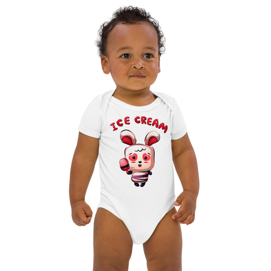 Cute Rabbit Eating Ice Cream, Bodysuits, No. 0385