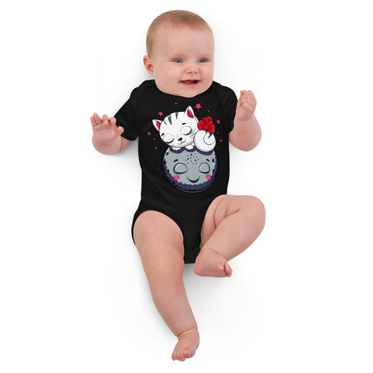 Cute Kitty Cat Sleeping on Moon Bodysuit, No. 0324