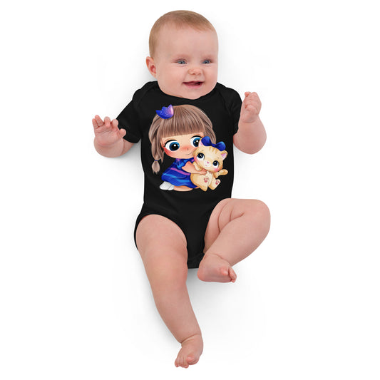 Little Girl Hugging Cute Cat Bodysuit, No. 0049