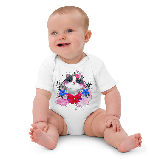 Cute Kitty Cat with Flowers Bodysuit, No. 0328