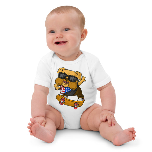 Funny Bulldog Dog Playing Skateboard Bodysuit, No. 0249