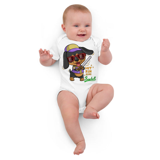 Cool Dachshund Dog Playing Baseball Bodysuit, No. 0255