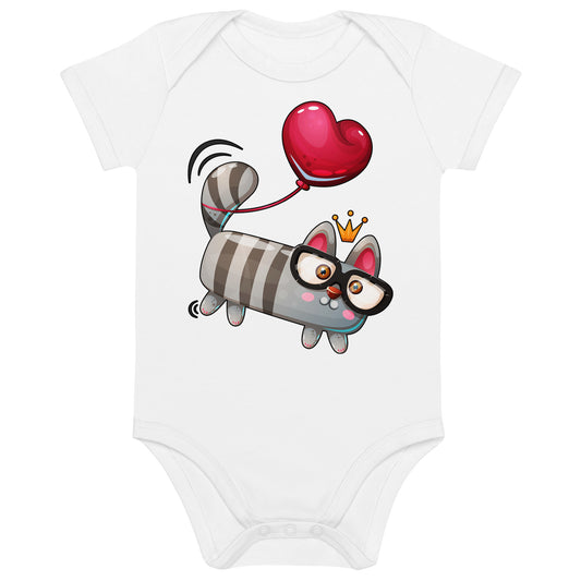 Funny Kitty Cat with Red Heart Bodysuit, No. 0426